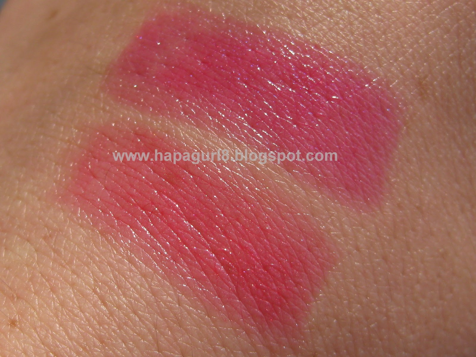 I love bright colors but I don't always want that OCC lip tar, pure color, overpowering look on my lips. I often will use a lipstick that is ridiculously bright, then blot a million times, and then put a gloss or balm on top. With one swipe of the Caresse lipsticks, you don't have to go through all those steps to get the same look-- a sheerer bright color with a sheen. If you don't like glitter, you should be aware that these have microfine duo-chrome shimmers in them. They don't feel gritty or can't really be seen unless you come within an inch of it. (Unlike the YSL Rouge Volupte Perle in Sparkling Fuchsia, which I could feel the sparkle particles on my lips. I hated that) PROS: - Feels weightless (lighter than Chapstick), similar feel to Blistex Silk & Shine - Beautiful, vibrant colors - Leaves a light stain (but nothing like the Revlon Stain Balms) -Soft, fruity scent -Doesn't leave lips dry, but it's necessarily all that moisturizing CONS: -Wear-time is not very long, but I don't mind reapplying.